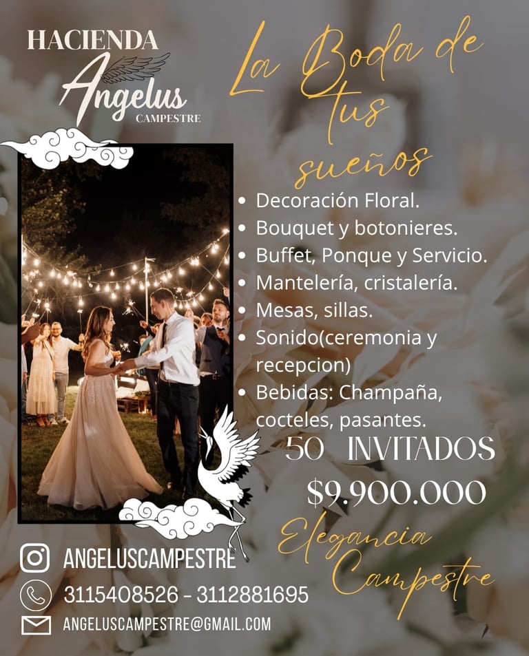 En Hacienda Angelus, ofrecemos espacios únicos para eventos sociales, culturales y corporativos en Bogotá, con servicios todo incluido para garantizar experiencias memorables. Te ofrecemos servicios de: